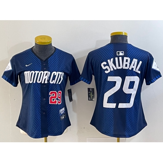 >Women's Detroit Tigers #29 Tarik Skubal 2024 Navy City Connect Cool Base Limited Stitched Jerseys