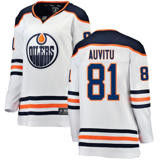 Home>NHL>Edmonton Oilers>Yohann Auvitu>Women's Edmonton Oilers #81 Yohann Auvitu Authentic White Away Fanatics Branded Breakaway NHL Jersey