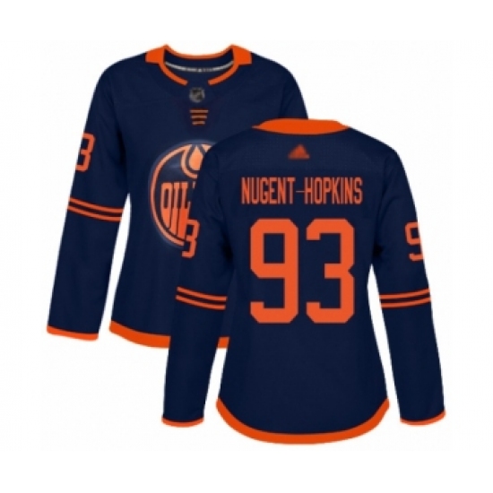 Women's Edmonton Oilers #93 Ryan Nugent-Hopkins Authentic Navy Blue Alternate Hockey Jersey