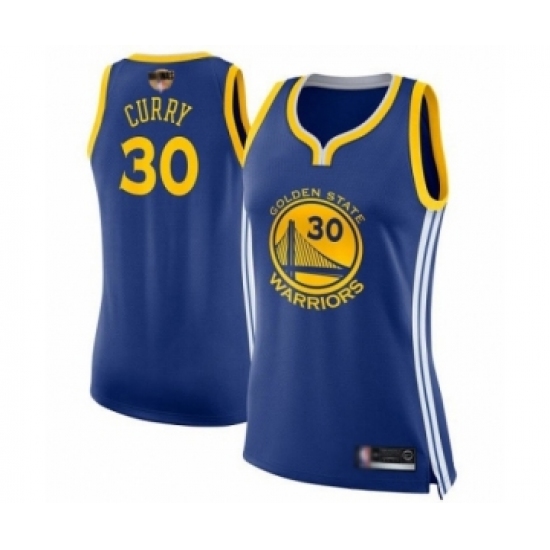 >Women's Golden State Warriors #30 Stephen Curry Swingman Royal Blue 2019 Basketball Finals Bound Basketball Jersey - Icon Edition