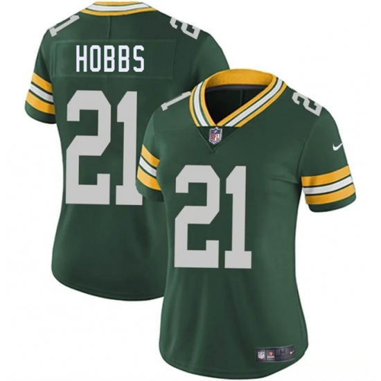>Women's Green Bay Packers #21 Nate Hobbs Green 2025 Vapor Untouchable Limited Stitched Jersey