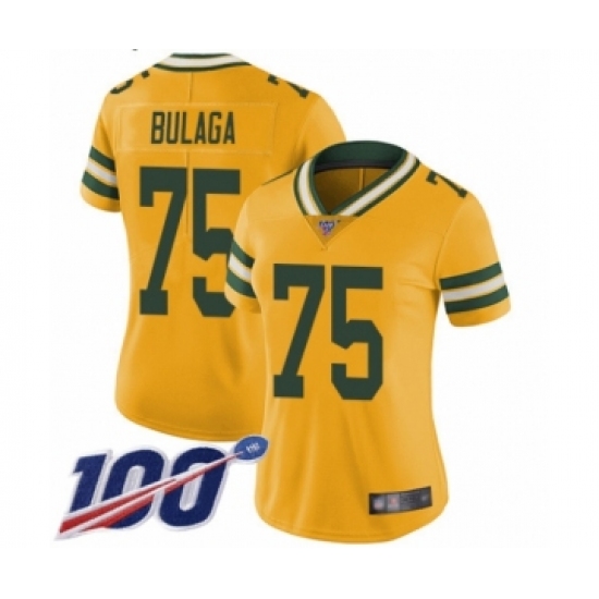 >Women's Green Bay Packers #75 Bryan Bulaga Limited Gold Rush Vapor Untouchable 100th Season Football Jersey