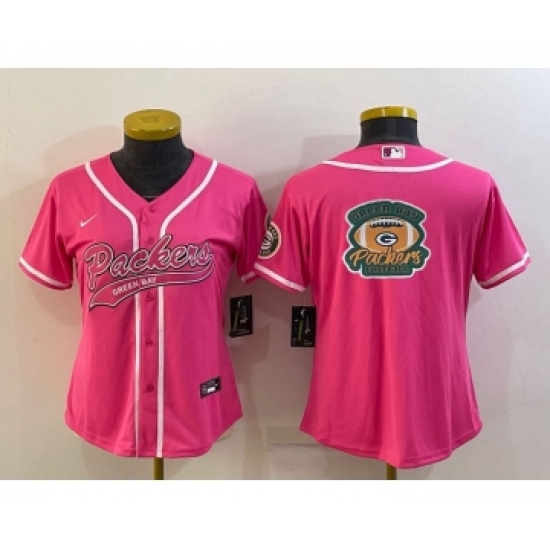 Women's Green Bay Packers Pink Team Big Logo With Patch Cool Base Stitched Baseball Jersey