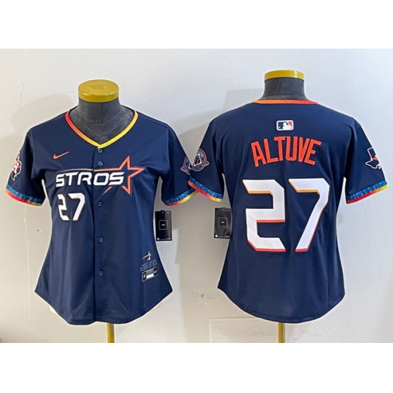 >Women's Houston Astros #27 Jose Altuve Navy 2025 City Connect With Texas Patch Limited Stitched Baseball Jersey(Run Small)
