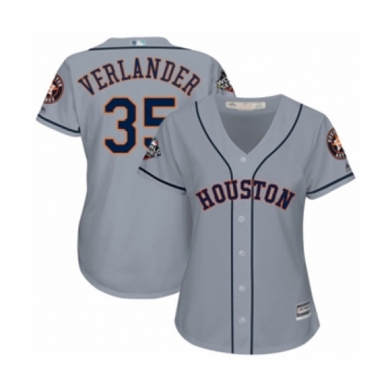 Women's Houston Astros #35 Justin Verlander Authentic Grey Road Cool Base 2019 World Series Bound Baseball Jersey