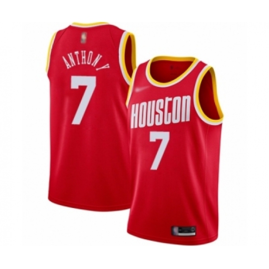 Men's Houston Rockets #7 Carmelo Anthony Authentic Red Hardwood Classics Finished Basketball Jersey