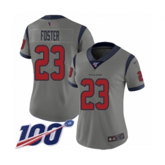 >Women's Houston Texans #23 Arian Foster Limited Gray Inverted Legend 100th Season Football Jersey