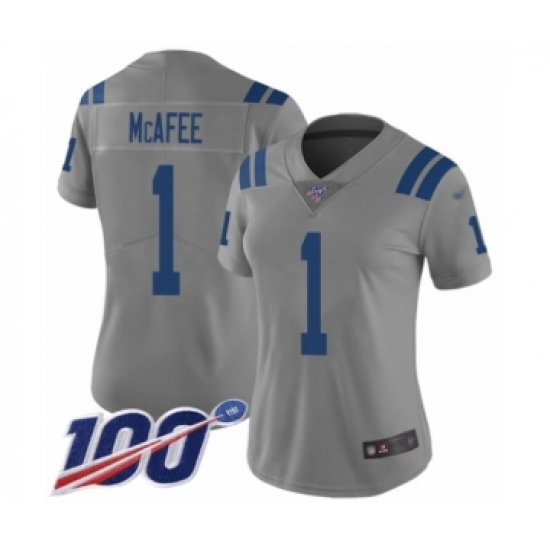 Women's Indianapolis Colts #1 Pat McAfee Limited Gray Inverted Legend 100th Season Football Jersey