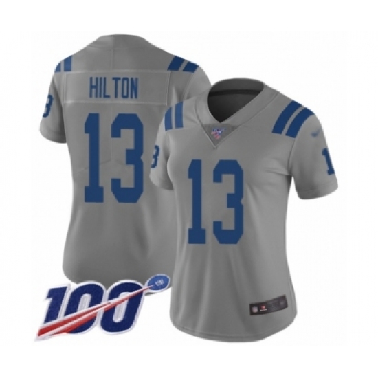 Women's Indianapolis Colts #13 T.Y. Hilton Limited Gray Inverted Legend 100th Season Football Jersey