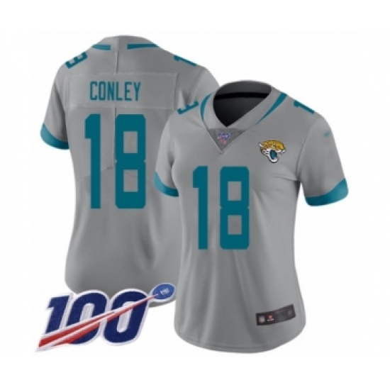 Women's Jacksonville Jaguars #18 Chris Conley Silver Inverted Legend Limited 100th Season Football Jersey