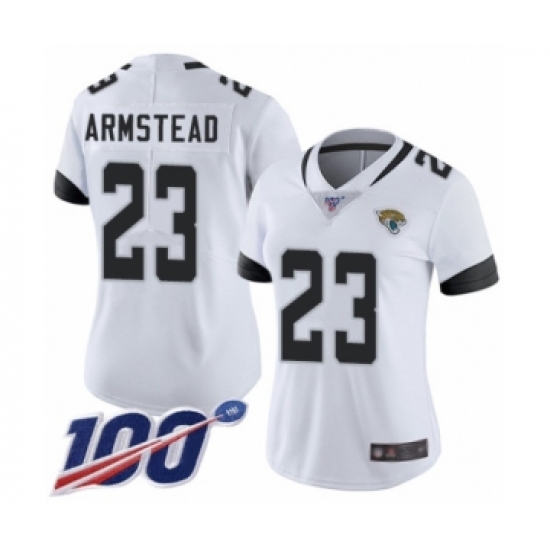 >Women's Jacksonville Jaguars #23 Ryquell Armstead White Vapor Untouchable Limited Player 100th Season Football Jersey