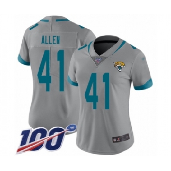 >Women's Jacksonville Jaguars #41 Josh Allen Silver Inverted Legend Limited 100th Season Football Jersey