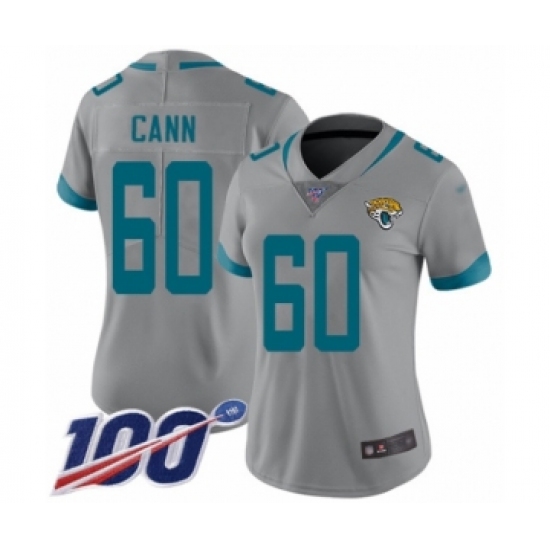 >Women's Jacksonville Jaguars #60 A. J. Cann Silver Inverted Legend Limited 100th Season Football Jersey
