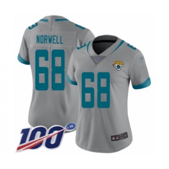 Women's Jacksonville Jaguars #68 Andrew Norwell Silver Inverted Legend Limited 100th Season Football Jersey