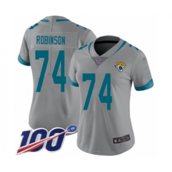 Women's Jacksonville Jaguars #74 Cam Robinson Silver Inverted Legend Limited 100th Season Football Jersey