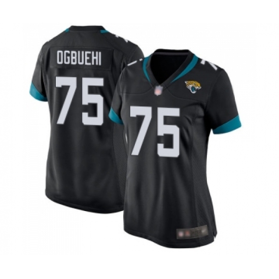 >Women's Jacksonville Jaguars #75 Cedric Ogbuehi Game Black Team Color Football Jersey
