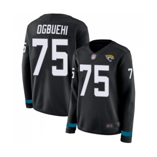 >Women's Jacksonville Jaguars #75 Cedric Ogbuehi Limited Black Therma Long Sleeve Football Jersey