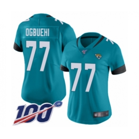 >Women's Jacksonville Jaguars #77 Cedric Ogbuehi Teal Green Alternate Vapor Untouchable Limited Player 100th Season Football Jersey