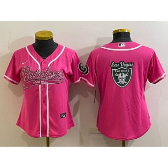 >Women's Las Vegas Raiders Pink Team Big Logo With Patch Cool Base Stitched Baseball Jersey