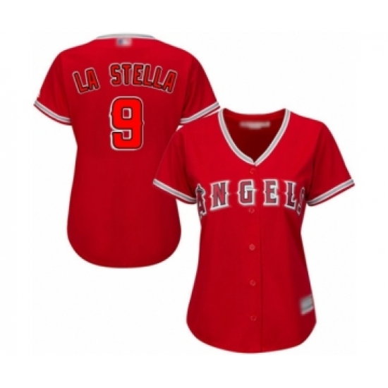 >Women's Los Angeles Angels of Anaheim #9 Tommy La Stella Authentic Red Alternate Baseball Jersey