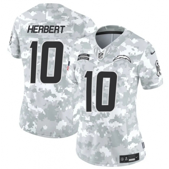 >Women's Los Angeles Chargers #10 Justin Herbert 2024 F.U.S.E Arctic Camo Salute To Service Limited Stitched Football Jersey(Run Small)