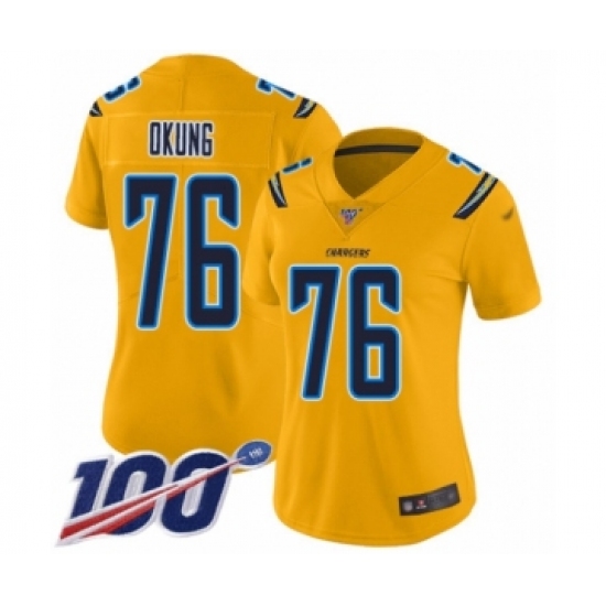 Women's Los Angeles Chargers #76 Russell Okung Limited Gold Inverted Legend 100th Season Football Jersey