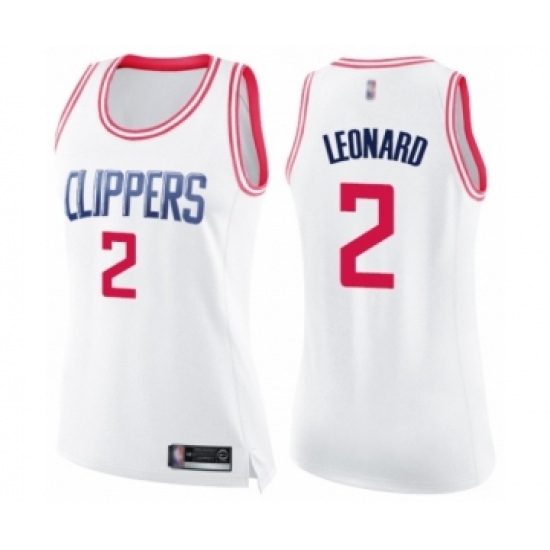 >Women's Los Angeles Clippers #2 Kawhi Leonard Swingman White Pink Fashion Basketball Jersey
