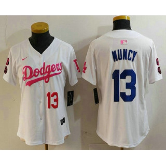 Women's Los Angeles Dodgers #13 Max Muncy Number White Pink With Limited Stitched Jersey