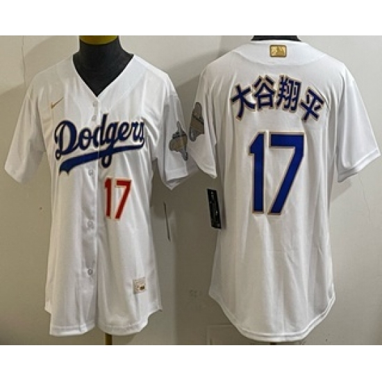 >Women's Los Angeles Dodgers #17 大谷翔平 White Japanese 2026 Gold Collection Limited Jersey