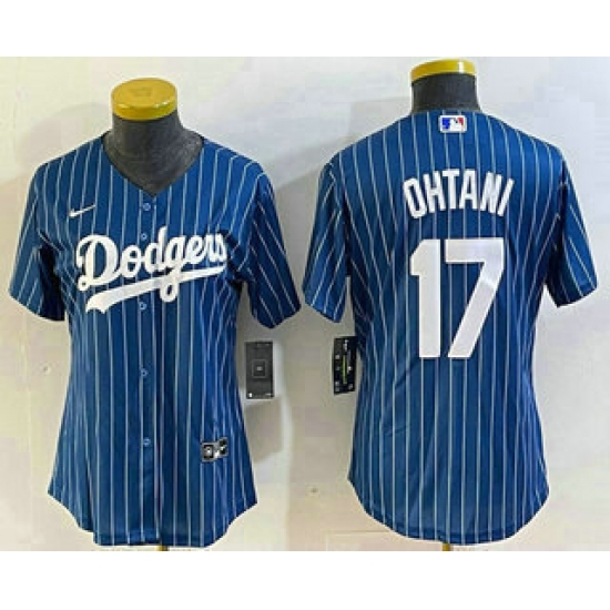 Women's Los Angeles Dodgers #17 Shohei Ohtani Blue Pinstripe Cool Base Stitched Baseball Jersey