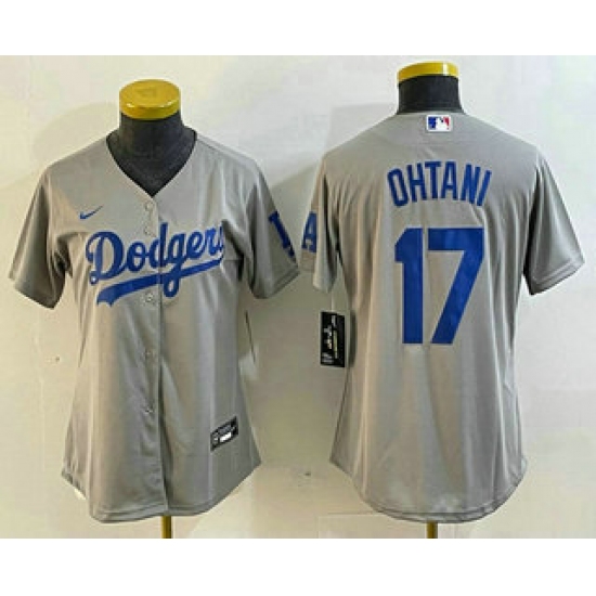 >Women's Los Angeles Dodgers #17 Shohei Ohtani Grey Cool Base Stitched Jersey