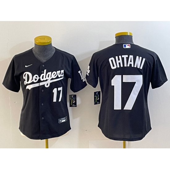 >Women's Los Angeles Dodgers #17 Shohei Ohtani Number Black Turn Back The Clock Stitched Cool Base Jersey