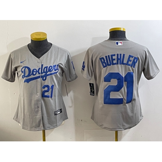 Women's Los Angeles Dodgers #21 Walker Buehler Number Grey Stitched Cool Base Nike Jerseys