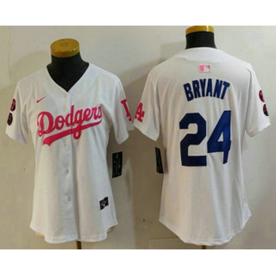>Women's Los Angeles Dodgers #24 Kobe Bryant White Pink With Limited Stitched Jersey
