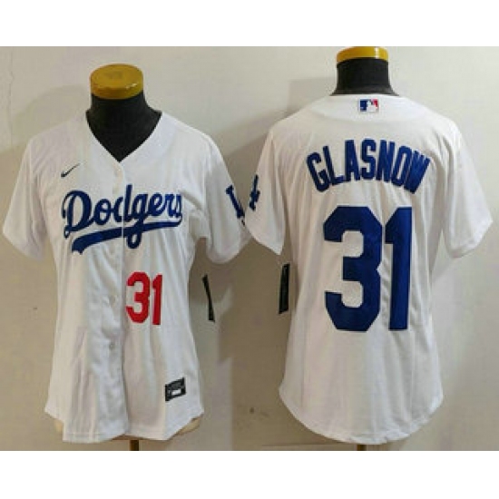 >Women's Los Angeles Dodgers #31 Tyler Glasnow Number White Stitched Cool Base Nike Jersey