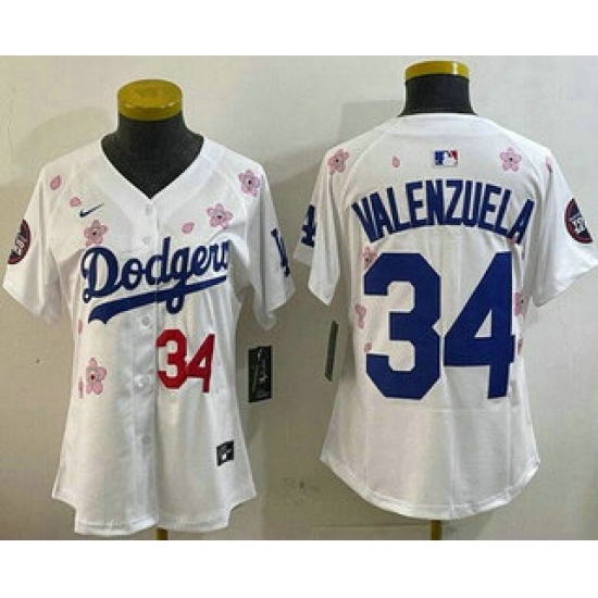 >Women's Los Angeles Dodgers #34 Fernando Valenzuela White 2025 Tokyo Series Limited Jersey