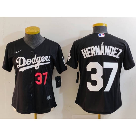 Women's Los Angeles Dodgers #37 Teoscar Hernandez Number Black Cool Base Stitched Jersey