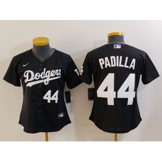 >Women's Los Angeles Dodgers #44 Vicente Padilla Number Black Cool Base Stitched Jerseys