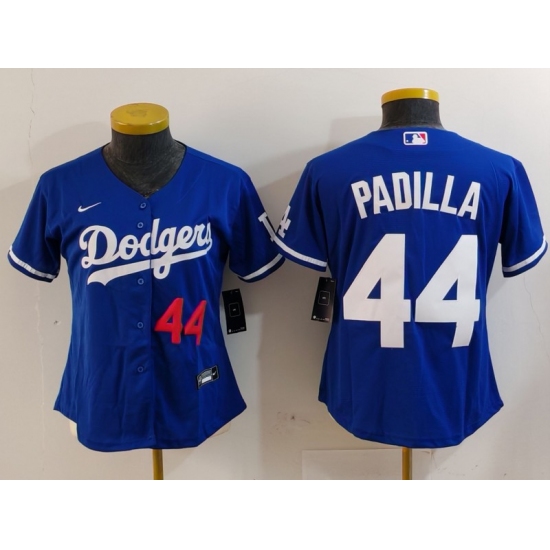 >Women's Los Angeles Dodgers #44 Vicente Padilla Number Blue Cool Base Stitched Jersey