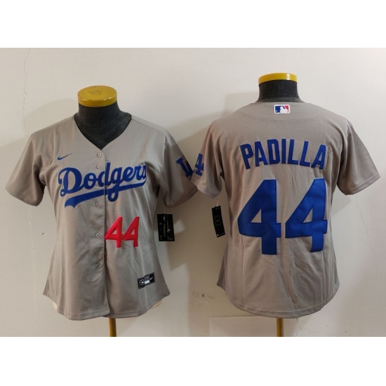 Women's Los Angeles Dodgers #44 Vicente Padilla Number Grey Cool Base Stitched Jersey