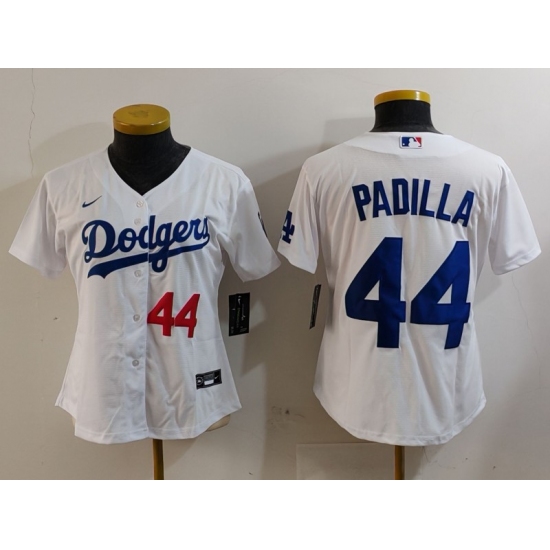 Women's Los Angeles Dodgers #44 Vicente Padilla Number White Cool Base Stitched Jersey