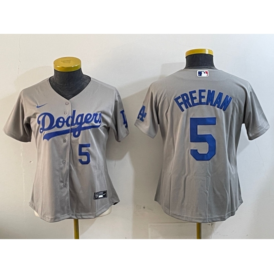 >Women's Los Angeles Dodgers #5 Freddie Freeman Number Grey Cool Base Stitched Jerseys