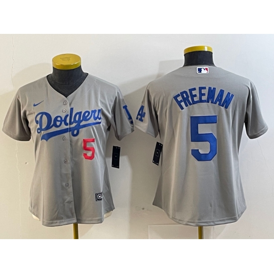 Women's Los Angeles Dodgers #5 Freddie Freeman Number Grey Cool Base Stitched Nike Jersey