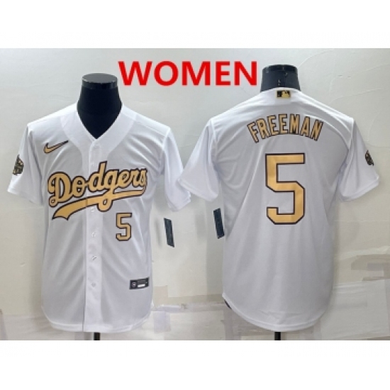 Women's Los Angeles Dodgers #5 Freddie Freeman Number White 2022 All Star Stitched Cool Base Nike Jersey