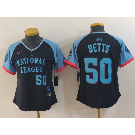 >Women's Los Angeles Dodgers #50 Mookie Betts Number Navy 2024 All Star Limited Stitched Jersey