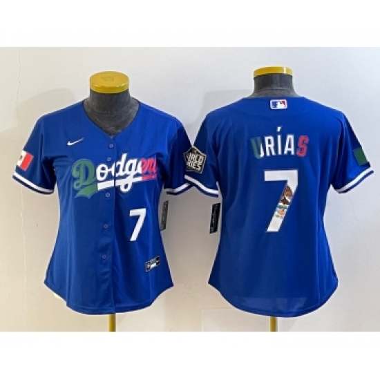 Women's Los Angeles Dodgers #7 Julio Urias Blue 2020 World Series Cool Base Nike Jersey3