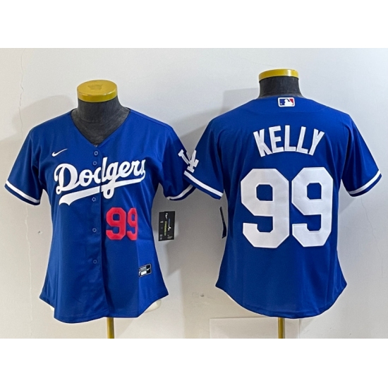 Women's Los Angeles Dodgers #99 Joe Kelly Number Blue Stitched Cool Base Nike Jersey