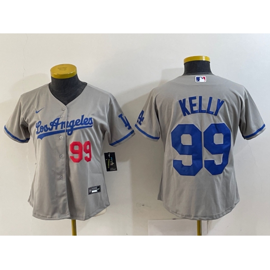 Women's Los Angeles Dodgers #99 Joe Kelly Number Grey Stitched Cool Base Nike Jerseys