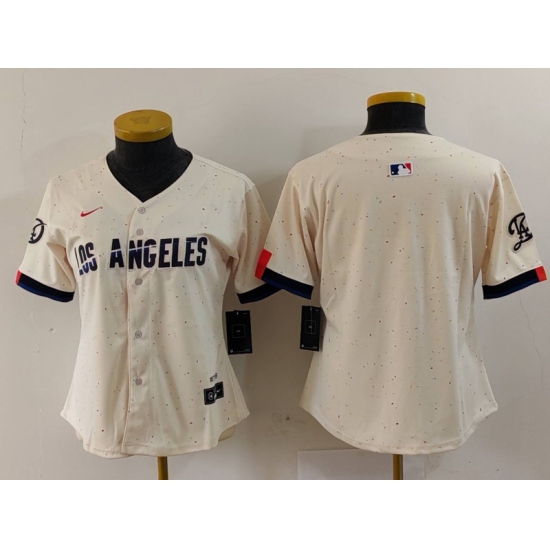>Women's Los Angeles Dodgers Blank Cream 2024 City Connect Limited Stitched Jersey