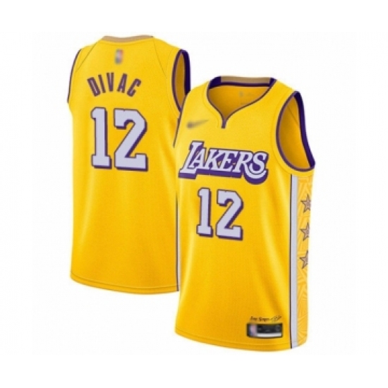 >Women's Los Angeles Lakers #12 Vlade Divac Swingman Gold Basketball Jersey - 2019 20 City Edition